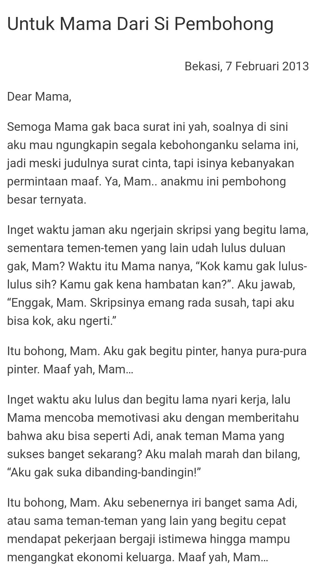 Andris Untuk Ida Bhatara Ganesha On Twitter Sebuah Surat Cinta Untuk Mama Dari Anaknya Si Pembohong 2013 Lalu Aku Ngerasain Betapa Beratnya Gak Punya Duit Tapi Terlalu Malu Bilang Ke